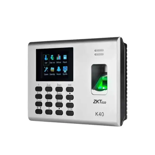El Checador K40 es una elegante e innovadora terminal biométrica IP diseñada para gestionar la asistencia de empleados y controlar el acceso de una puerta.